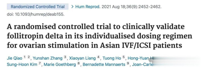 A randomised controlled trial to clinically validate follitropin delta in its individualised dosing regimen for ovarian stimulation in Asian IVF/ICSI patients. Hum Reprod. 2021 Aug 18;36(9):2452-2462. doi: 10.1093/humrep/deab155.